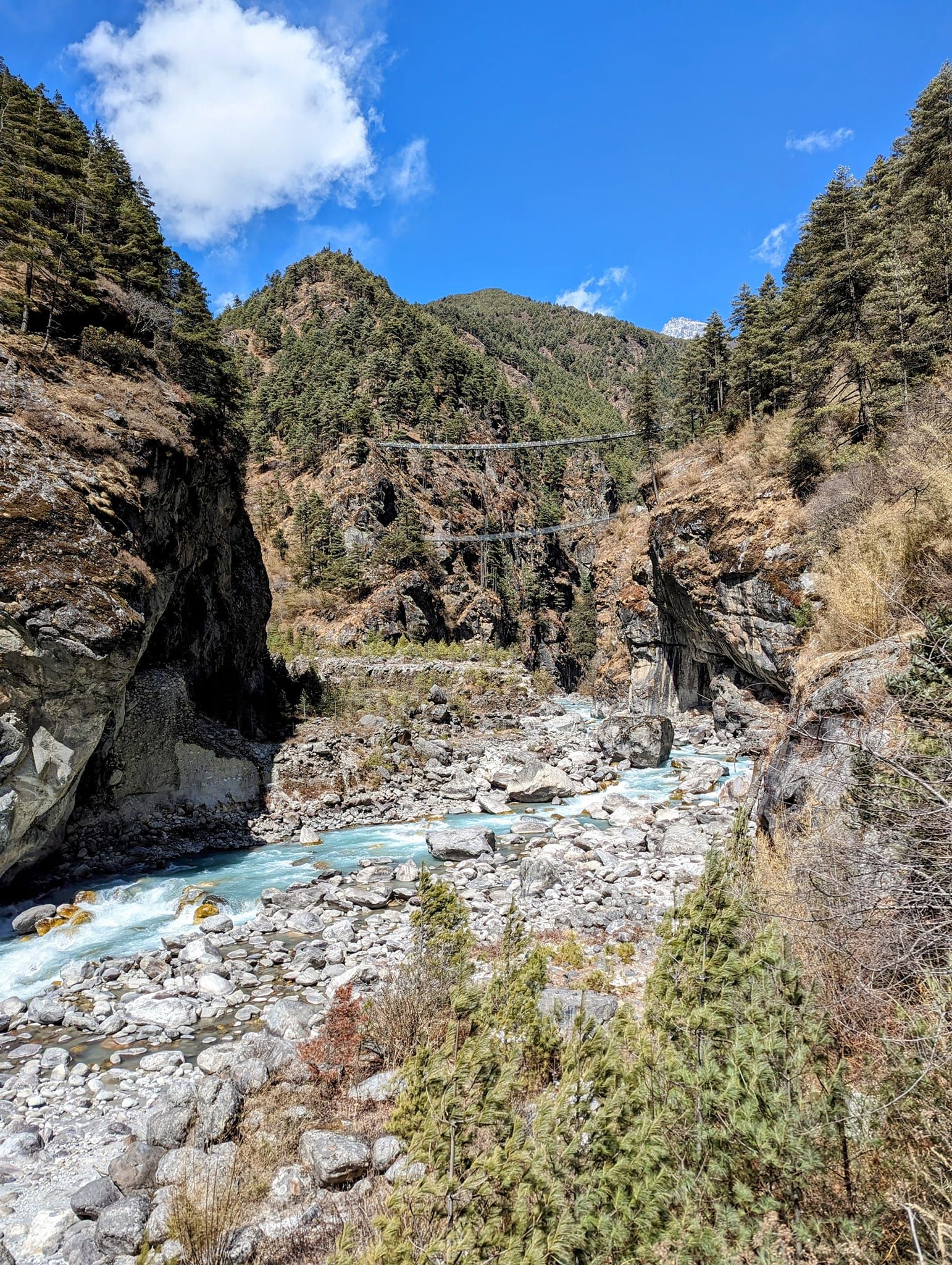 The adventure began with a breathtaking flight into Lukla (turns out this is the most dangerous airport in the world!), offering stunning views of the majestic mountains. After a quick tea break, the trek commenced, stopping for a delicious mixed pizza and chips lunch. We crossed three swing bridges and reached Pineforest Hotel, encountering a bit of rain towards the end.